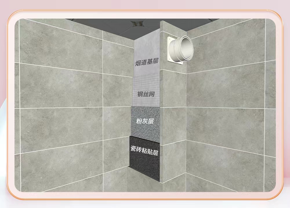 煙道防高溫處理,能有效杜絕因煙道溫度差異、油污滲透而導(dǎo)致的瓷磚脫落;煙道管瓷磚貼到頂,再開孔裝"止逆閥" ,確保油煙不倒灌;陰、陽角方正度±垂直度≤5MM??芍^精雕細(xì)琢每一個(gè)細(xì)節(jié)。