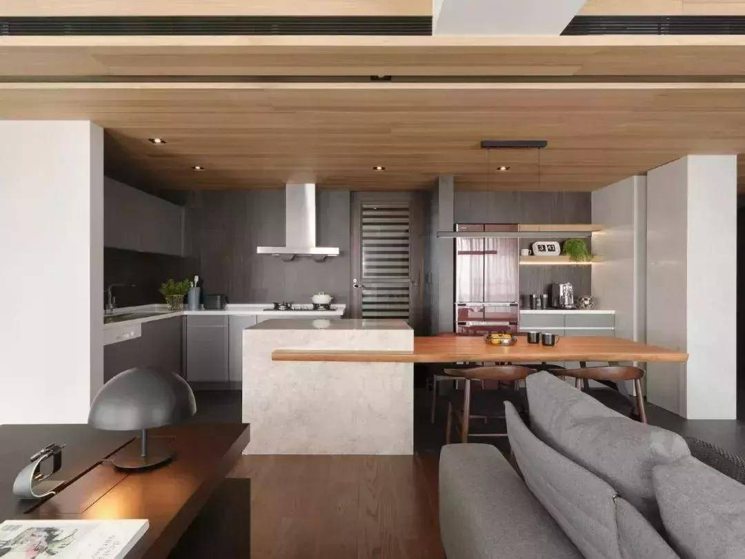 大家對(duì)開(kāi)放式廚房最擔(dān)心的問(wèn)題是油煙,尤其是中國(guó)菜。油煙比較大,容易滲透到客廳區(qū)域。長(zhǎng)此以往,客廳里的沙發(fā)、椅子、電視等都可能有油漬。