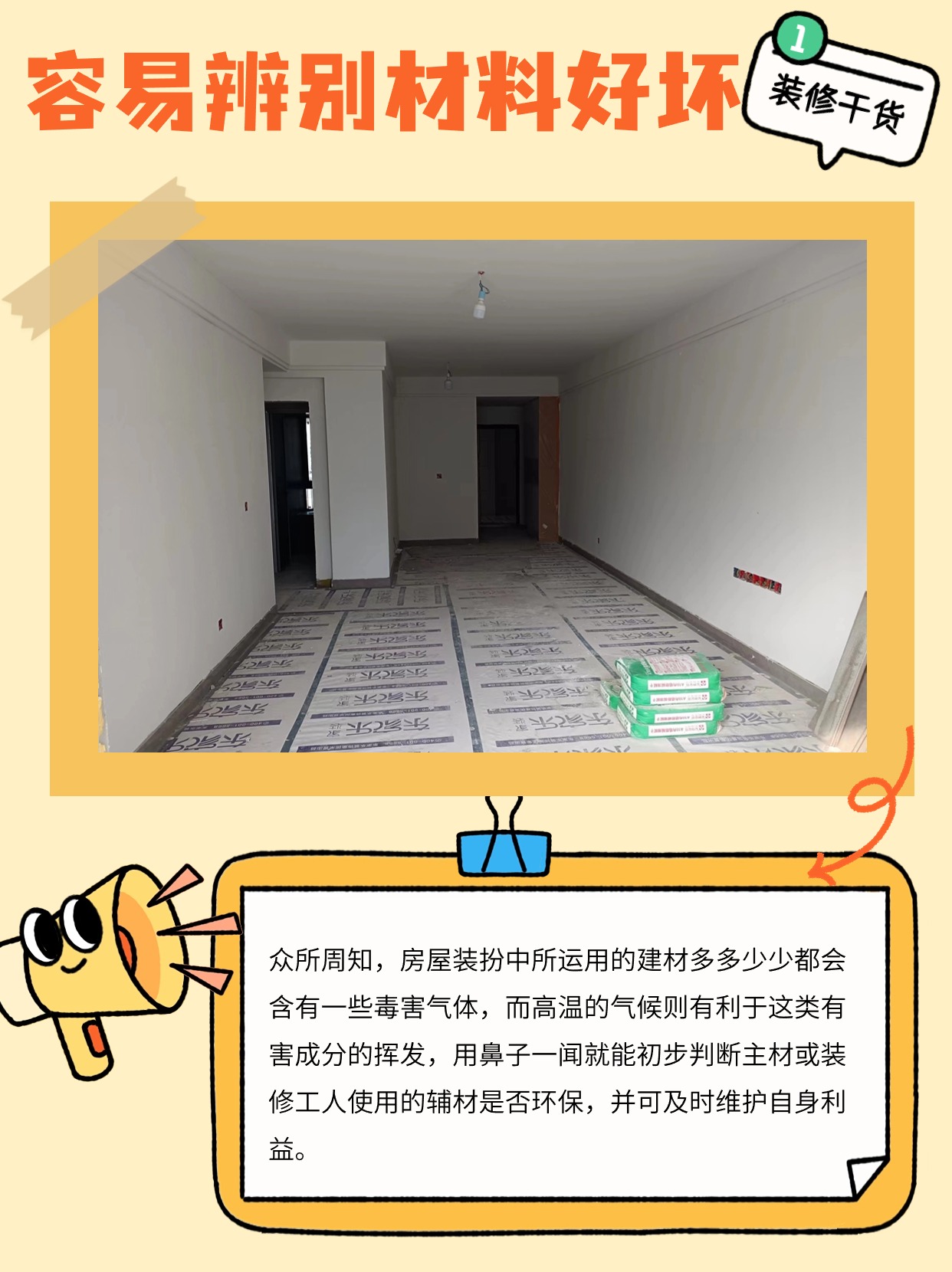 眾所周知,房屋裝扮中所運用的建材多多少少都會含有一些毒害氣體,而高溫的氣候則有利于這類有害成分的揮發(fā),用鼻子一聞就能初步判斷主材或裝修工人使用的輔材是否環(huán)保,并可及時維護自身利益。