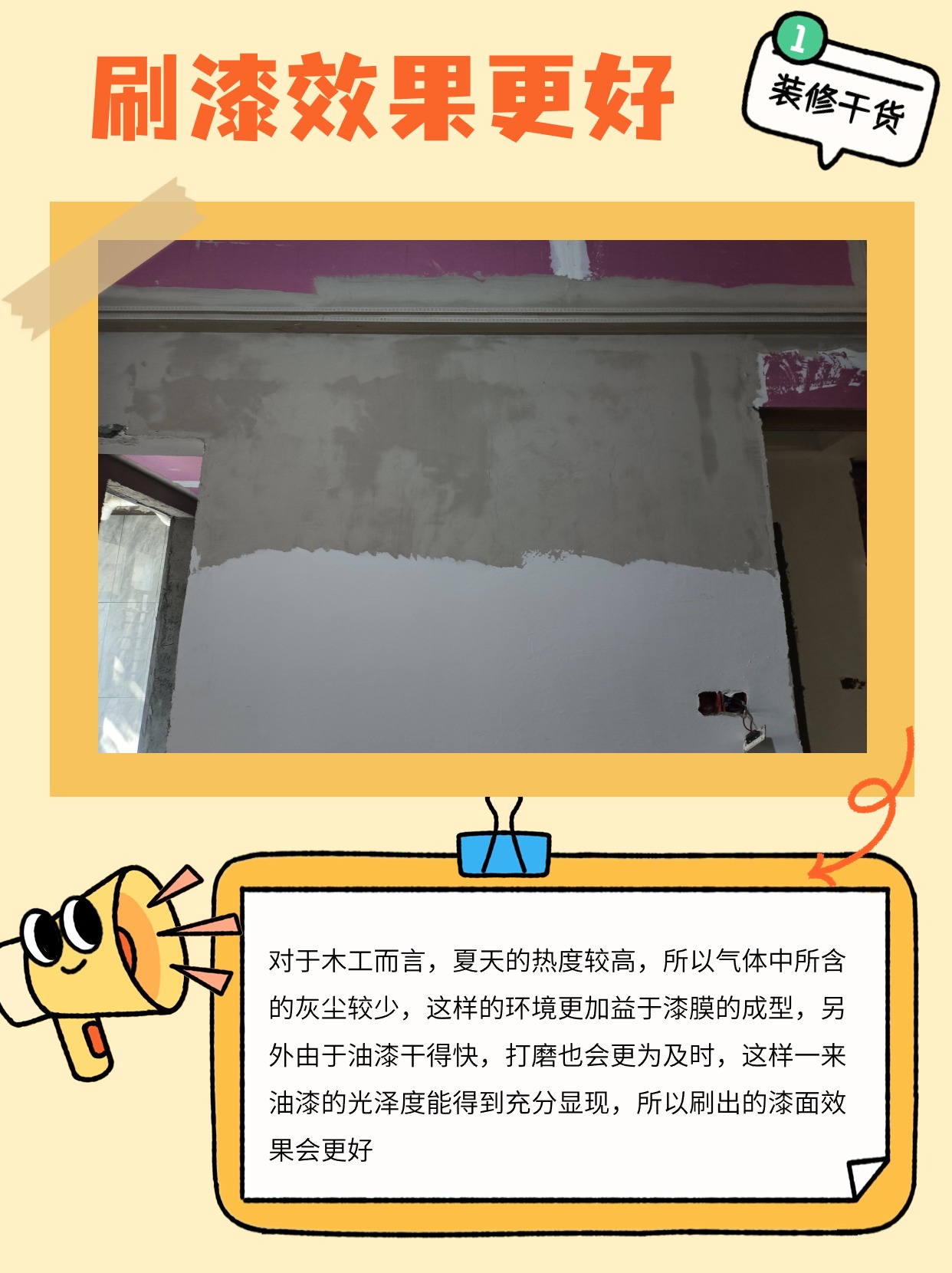 對于木工而言,夏天的熱度較高,所以氣體中所含的灰塵較少,這樣的環(huán)境更加益于漆膜的成型,另外由于油漆干得快,打磨也會更為及時,這樣一來油漆的光澤度能得到充分顯現(xiàn),所以刷出的漆面效果會更好。