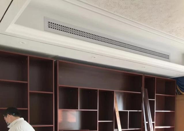 此法的優(yōu)點:它不會降低客廳的整體層高,且有效地遮擋了房屋的橫梁與空調室內機,完全可以避免看到橫梁的情況,特別適合橫梁在靠墻的位置。