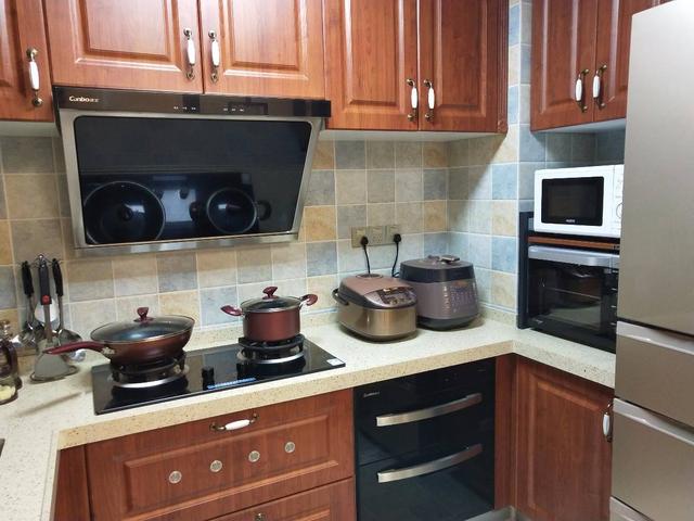 廚房不大,滿滿當(dāng)當(dāng)?shù)?,平時(shí)家里人也不多,做飯的時(shí)間也少??鞠浠旧现皇怯脕砜嫉八图t薯的,蛋糕還要努力!