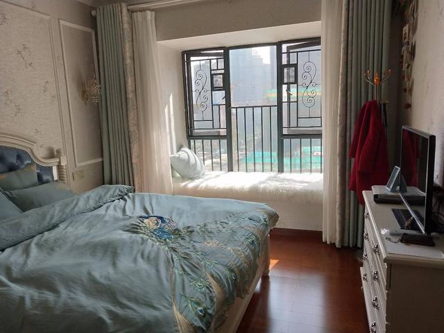 主臥不是很大,但有個(gè)好大的飄窗,天氣好的時(shí)侯,喝喝茶,看看書,也是極好的!