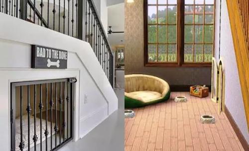 對(duì)于家有萌寵的朋友來(lái)說(shuō),該如何安置自家的阿貓阿狗是個(gè)值得思考的問題。隨便在屋里給它做個(gè)小窩吧,欠點(diǎn)兒溫馨;給它單獨(dú)建個(gè)房間吧又沒那個(gè)必要。如果有像小復(fù)式裝修樣板間那樣,把樓梯處做成一個(gè)嵌入式的寵物房,一個(gè)水碗、一個(gè)食盆、一個(gè)小窩、幾件寵物喜歡的玩具,一扇可以讓怕生的寵物在來(lái)客人時(shí)鉆進(jìn)去躲起來(lái)的小門……愛寵物,就在進(jìn)行復(fù)式裝修的時(shí)候?yàn)樗蛟煲环竭@樣的小空間吧!