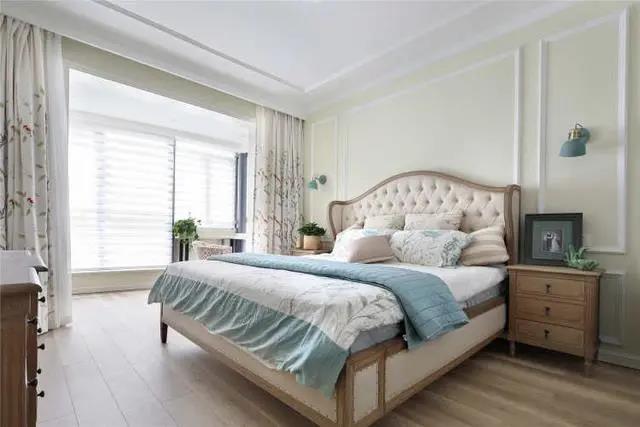 臥室墻面換成了暖色調(diào)的墻漆,搭配上石膏線造型,有溫度又不單調(diào)。橡木色的家具與地板相呼應(yīng),平添了幾分自然感,營造舒適慵懶的睡眠環(huán)境。