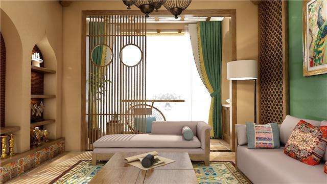 東南亞風(fēng)格的裝飾中,室內(nèi)所用的材料多直接取自自然。東南亞風(fēng)格散發(fā)著濃烈的自然氣息,色澤上以木材、藤、竹為主,在視覺(jué)感受上有泥土的質(zhì)樸、原木的天然材料搭配、布藝的恰當(dāng)點(diǎn)綴。