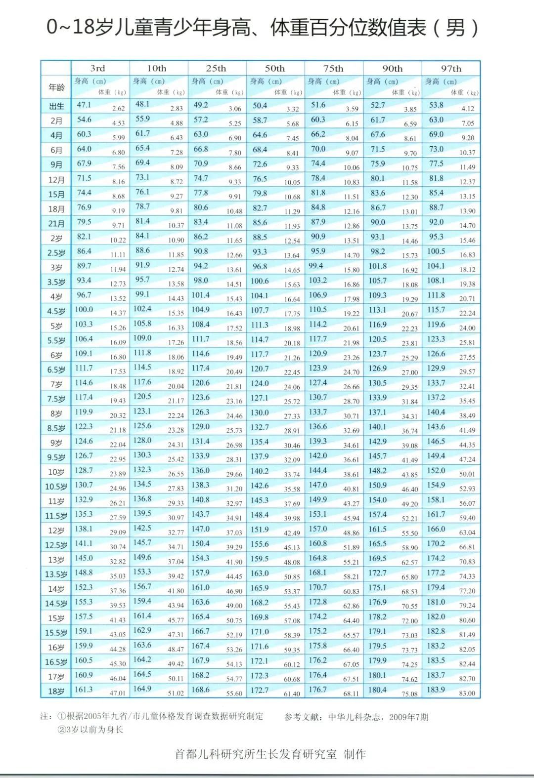 下面是兒童身高體重標(biāo)準(zhǔn)表較新版,家長可以將孩子不同年齡的身高與標(biāo)準(zhǔn)表進(jìn)行對(duì)照自查。如果0-18歲孩子的身高低于-2SD,說明孩子可能存在矮小癥,家長一定要警惕。
