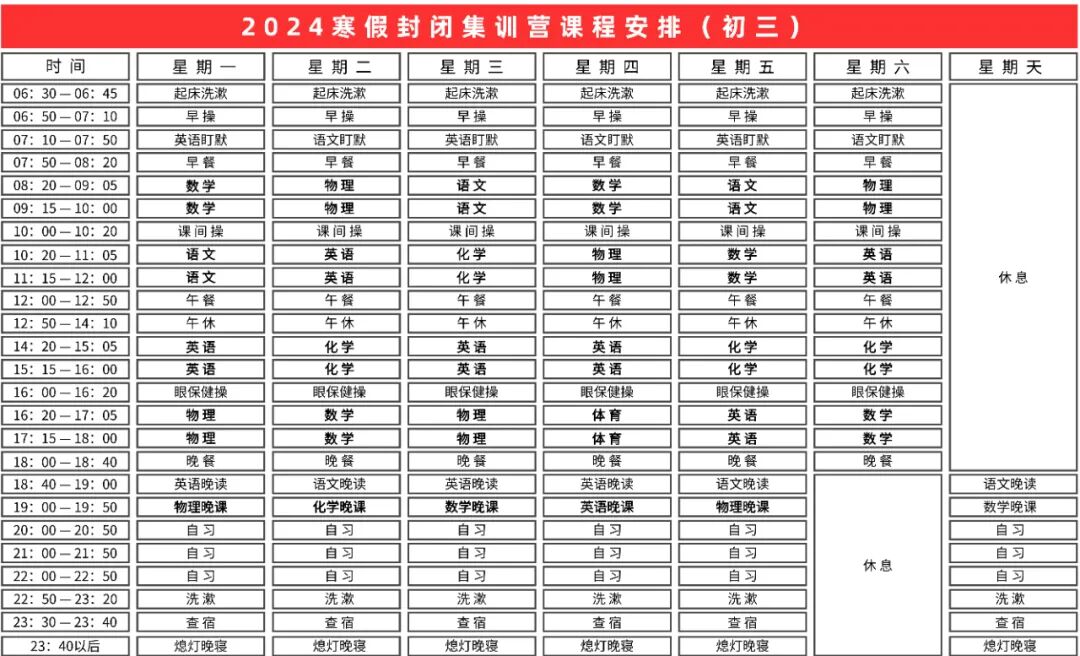 全封閉集訓(xùn),禁止學(xué)生攜帶任何電子設(shè)備,學(xué)生無法外出,上課有老師,宿舍有宿管,吃飯有食堂(大眾與清真兩者皆具備),運動有場地,安全有保障。學(xué)習(xí)、食宿、體育運動三點一線,只為心無旁騖,提高成績。